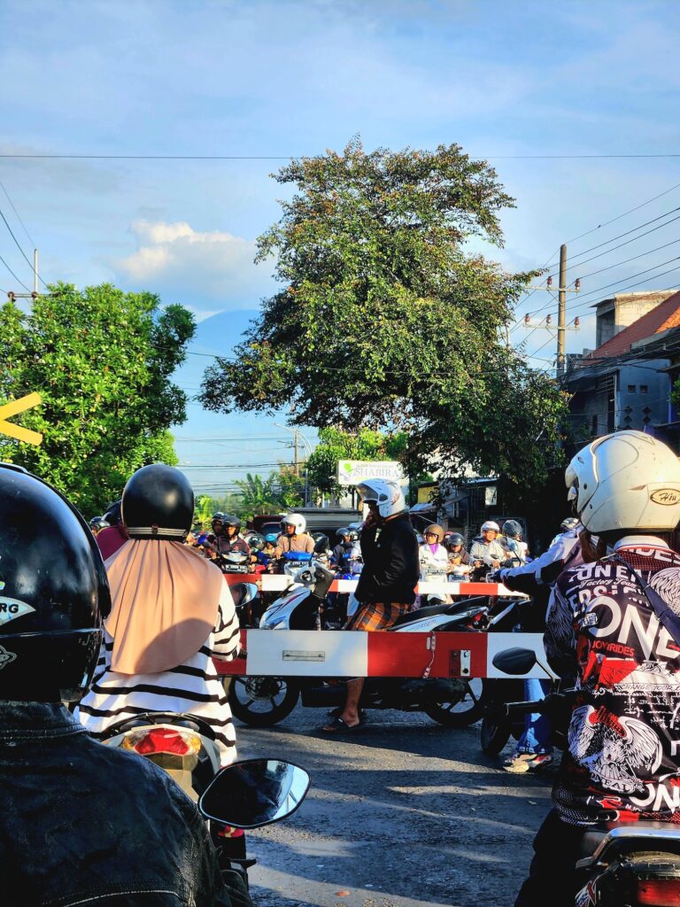 Pagi itu, Jum’at 2 Mei 2025, saya memutuskan untuk mengantarkan Ramona sekolah menggunakan sepeda motor, karena dia diharuskan masuk sekolah pukul 6:45, yang mana 45 menit lebih awal dari biasanya. Ini bukan pertama kalinya saya mengantar dia naik sepeda motor, tapi kali ini saya merasa lebih dekat dengan pengendara lainnya, dan saya lebih sering melihat sekeliling.
