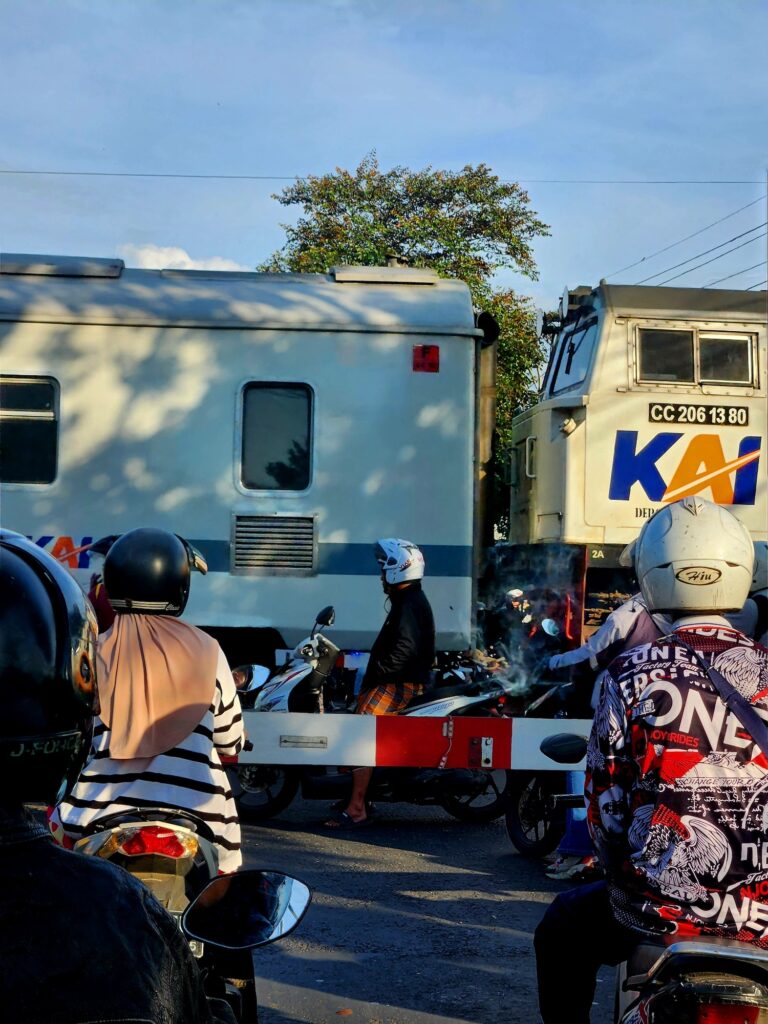 Yang tak mungkin tertinggal adalah orang-orang yang masuk ke dalam palang pintu kereta api. Kali ini saya tidak merasa marah melihat orang-orang itu, saya mencoba mencari sudut padang lain dan menjadi orang tersebut. Bisa jadi mereka sedang dalam keadaan terburu-buru, bisa jadi mereka ingin melihat kereta api lebih dekat, atau bisa jadi mereka ingin merasakan sensasi bagaimana angin yang dihembuskan kereta api ketika lewat.